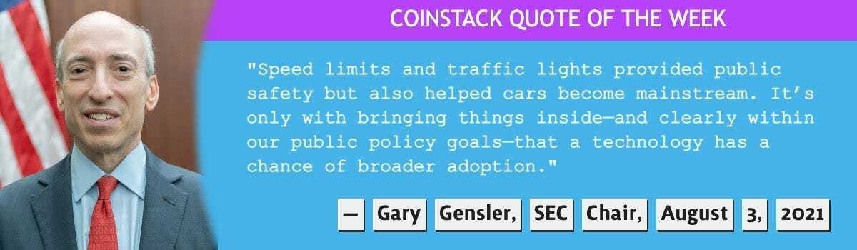 ⚖️ SEC Chairman Gary Gensler Demands Sensible Regulation - SEC Chair Gary Glenser has asked Congress to pass a law that could give the agency the legal authority to monitor crypto exchanges. He likens the crypto industry to the automobile industry by laying out that things didn’t start taking off until driving rules became regulated. Gensler stated, “Speed limits and traffic lights provided public safety but also helped cars become mainstream. It’s only with bringing things inside—and sort of clearly within our public policy goals—that a technology has a chance of broader adoption.” This means clearer crypto regulation may be coming in the USA -- AND that this might actually make it easier to operate. (Source)