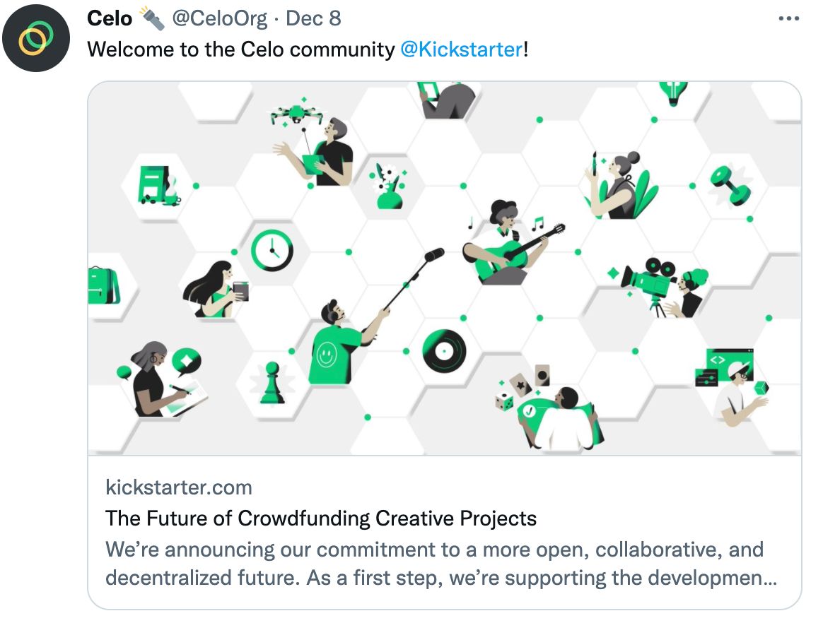 Kickstarter makes a “commitment to a more open, collaborative, and decentralized future” by choosing the Celo network to host its new decentralized protocol. In their article published on the Kickstarter site, Perry Chen, Founder of Kickstarter, and Aziz Hasan, Kickstarter CEO, explained why they opted for Celo: