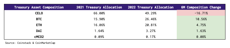 Celo has increased its BTC, ETH, and DAI holdings since then, strengthening its treasury diversification.
