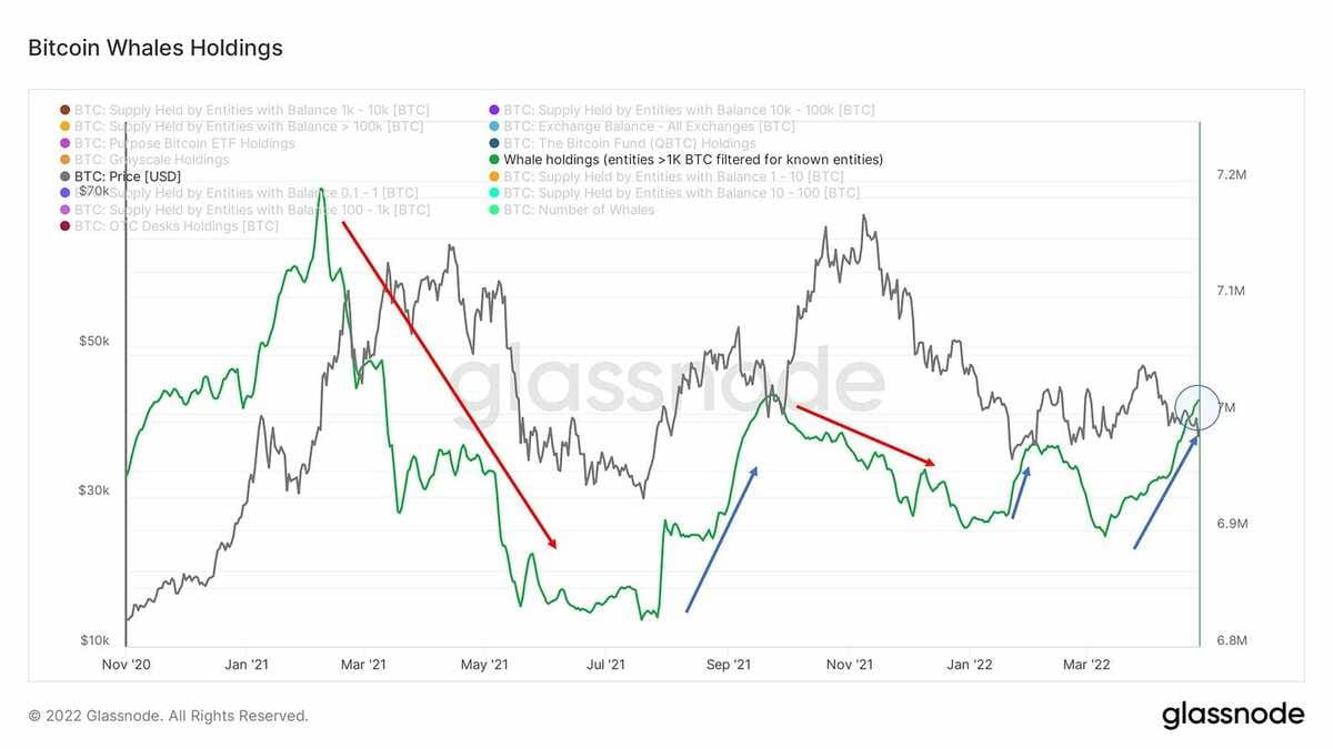 22/24) Whales accumulate when the market is low, and take profits when the market is high. Whales were: • Taking profits in May 2021 • Accumulating in September • Taking profits in November • Accumulating now. We can see this clearly evidenced via the whale holdings chart: