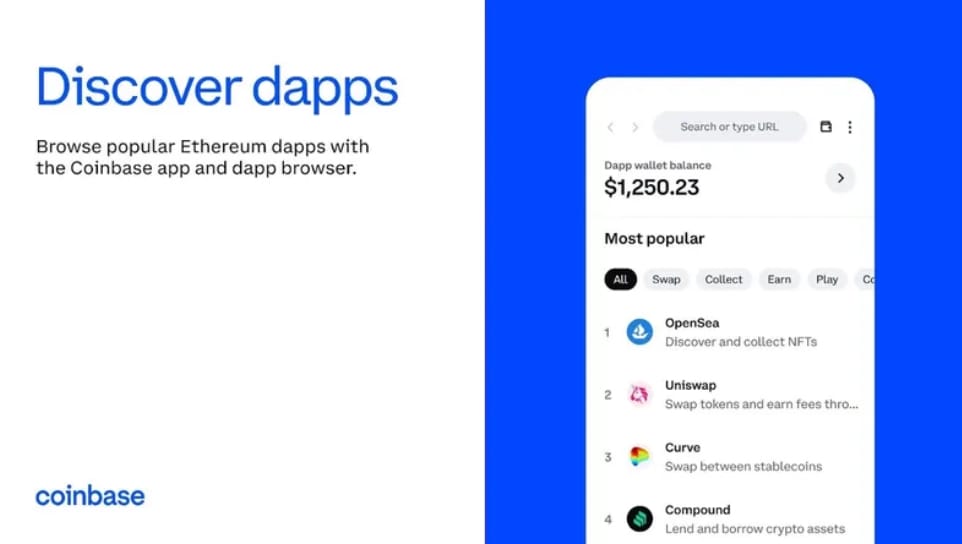 Coinbase now allows users to interact with Ethereum dapps directly from its mobile app. Previously, Coinbase Wallet users could plug into Web3 offerings through the separate app or browser extension. Enabling native dapp support connects Coinbase’s 98 million users to the on-chain economy without needing to transfer funds out of the main Coinbase platform.