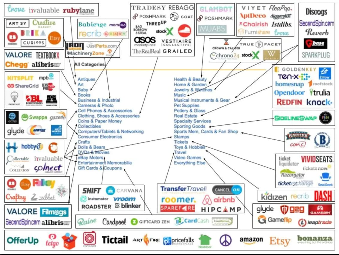 But by 2022, eBay had lost its market share to dozens of verticalized marketplaces. Kim drew attention to five marketplaces: Etsy, Airbnb, 1stdibs, Chegg, and Zillow. At the time of writing, these five were worth ~$130 billion — over 4 times greater than eBay’s ~$30 billion valuation at the same time.