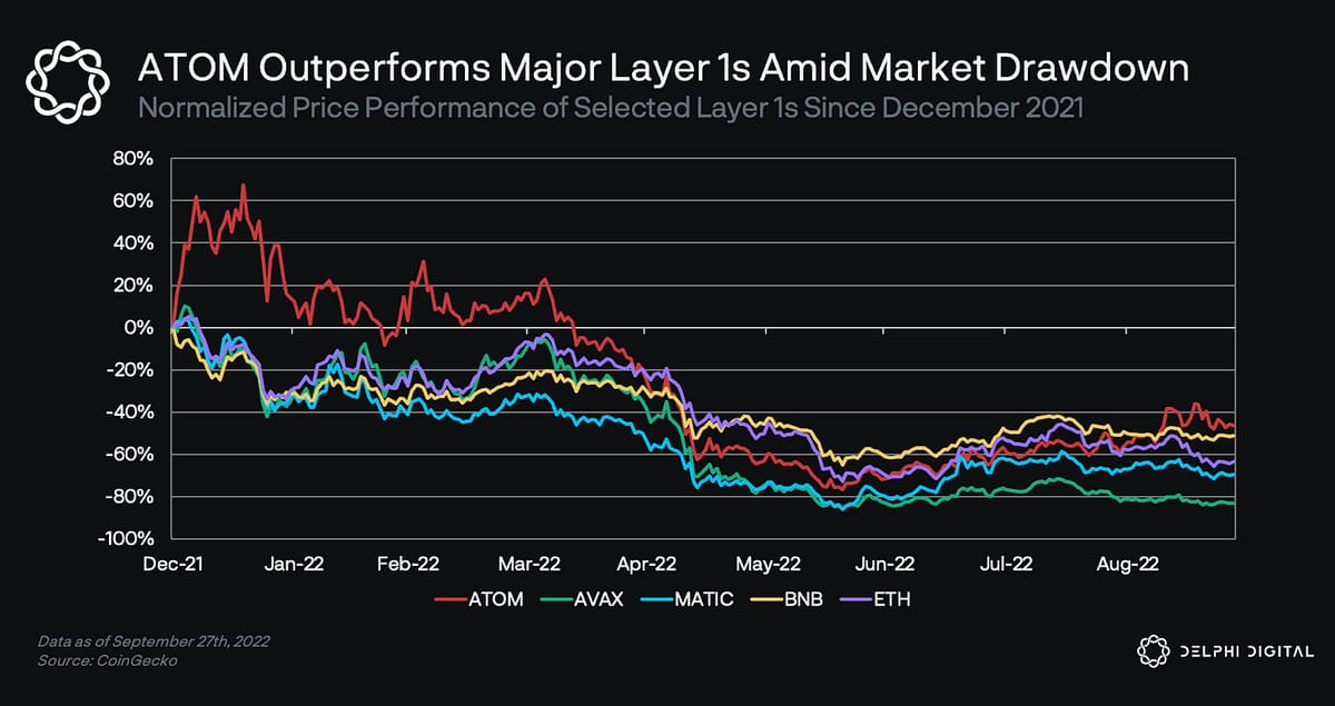 9. Cosmos Outperforms L1s, ATOM token Up 90% in the Last 3 Months